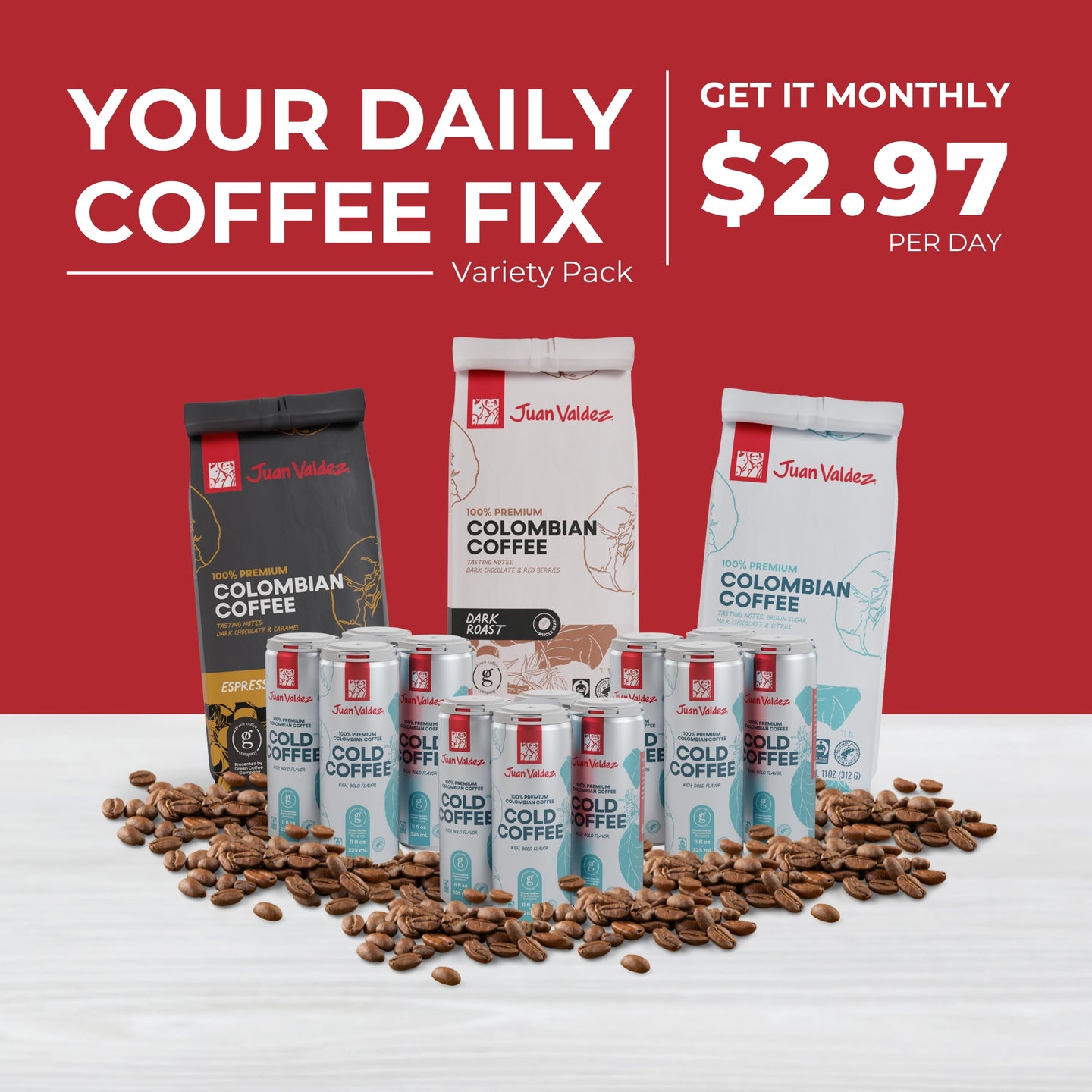 Most people spend $4-$6 on each visit to the coffee shop. That adds up. And that afternoon coffee – it probably isn´t even brewed fresh, having sat around since the morning. Save up to half of that cost and enjoy both your morning coffee and post-lunch ready-to-drink cold brew with Juan Valdez, Colombia´s best coffee, for only $3 per day.